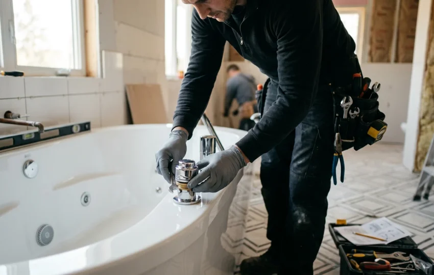 Licensed plumbing services for toilet and bathtub installation with proper connections and leak-proof sealing.