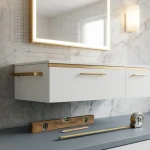 Floating Minimalist Cabinets represent the contemporary approach to bathroom storage. These frameless units mount directly to the wall without visible support, creating an illusion of weightlessness that makes even compact bathrooms feel more expansive. The clean lines and uncluttered appearance work exceptionally well in modern and Scandinavian designs. Frameless cabinets offer nearly double-digit gains in storage within the same footprint, allowing wider drawers and increased interior yield compared to traditional face-frame designs. According to Next Day Cabinets Industry Analysis, floating vanities are experiencing 15-20% year-over-year sales growth in 2026, with industry analysts predicting continued popularity for space-saving elegance.